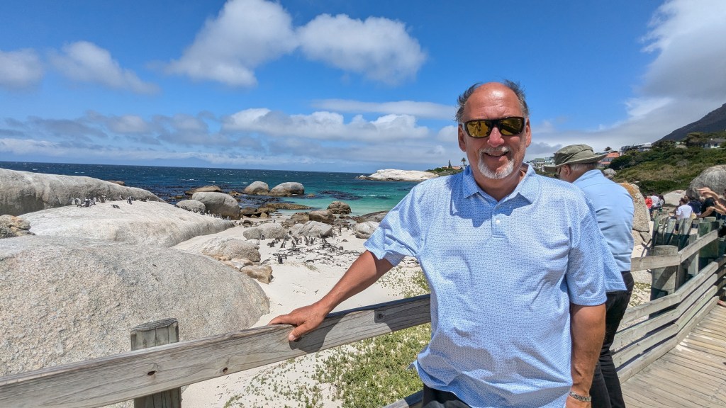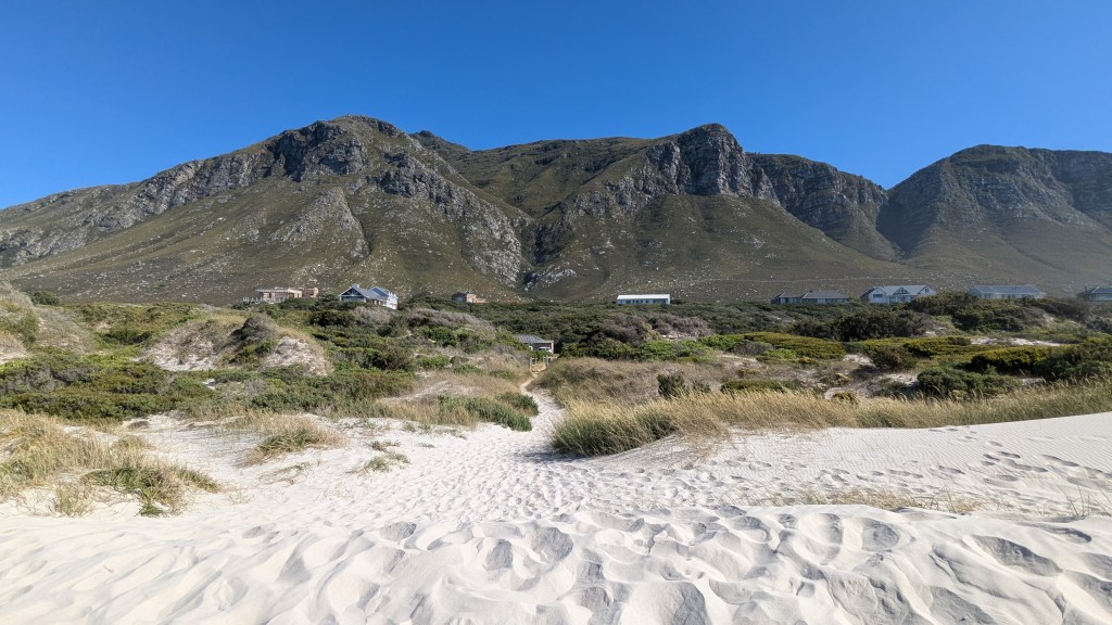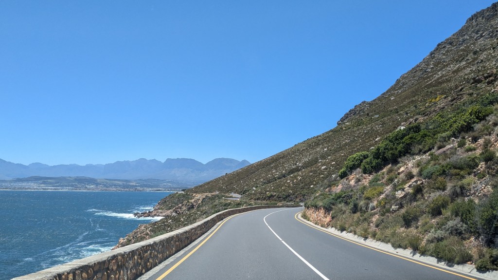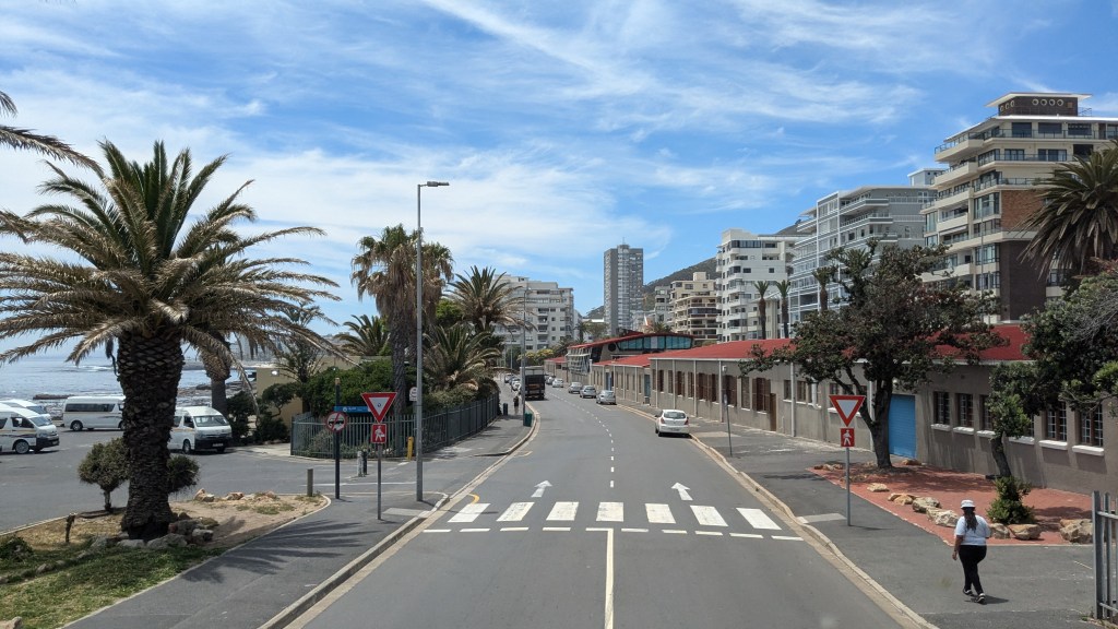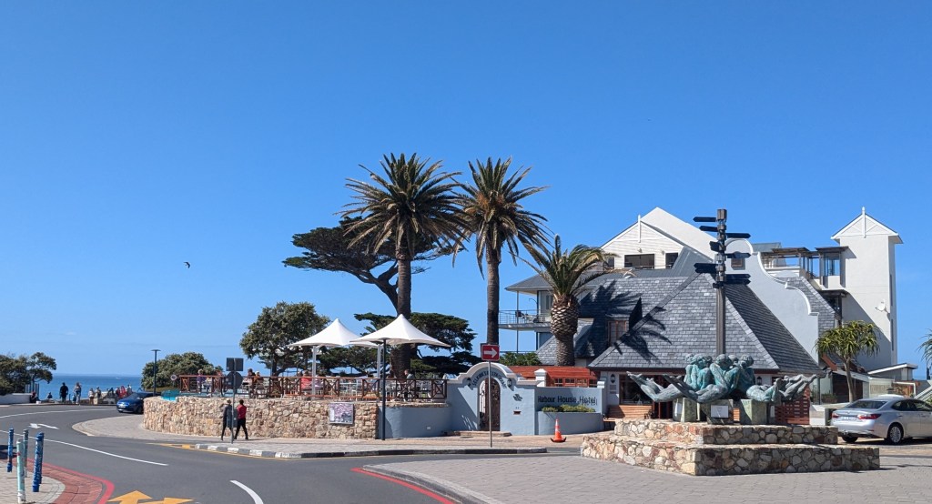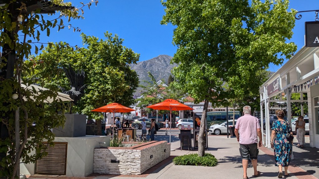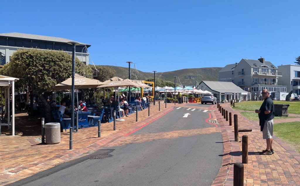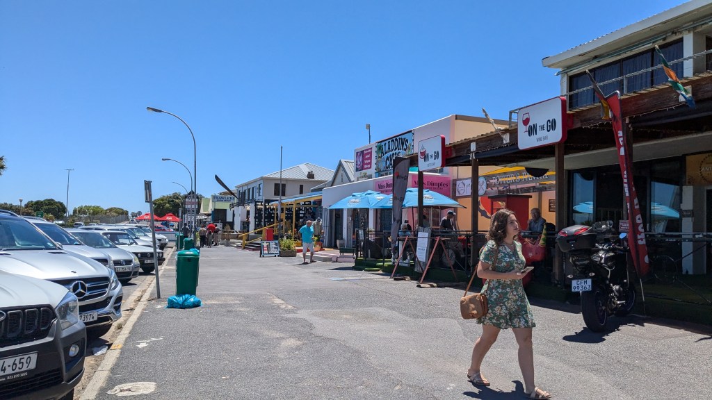 Nous avons fait un court arrêt à la boutique Vodacom de Fish Hoek pour y acheter d’autres données internet pour nos cellulaires (10$CAD pour 5G). Une bonne partie de la ville est nichée dans la montagne, ce qui en fait son charme. Nous avons adoré l’ambiance de la Main Street. Nous nous sentions en sécurité pour nous y promener.