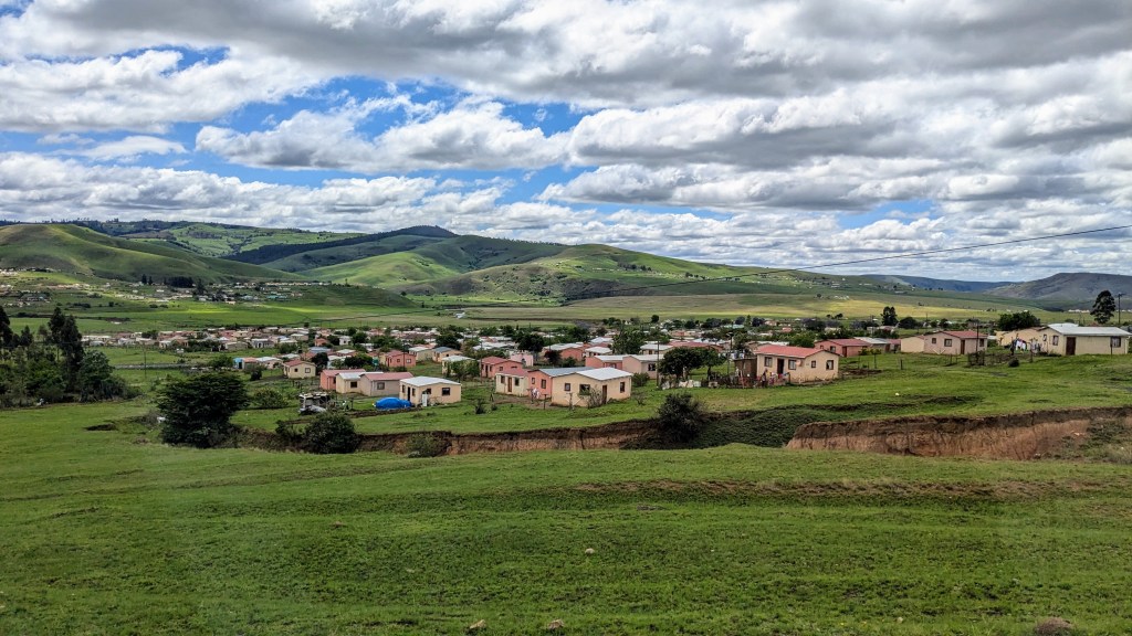 Nous avons passé Matatiele pour enfin arriver à destination. La petite ville de Maclear (aussi appelée Nqanqarhu depuis 2021) a une population de 10 000 habitants et est située dans la province du Cap-Oriental à 2 500m d’altitude. Ici, la langue maternelle est le isixhosa. Heureusement, l’anglais (avec l’accent british) est parlé partout dans le pays.