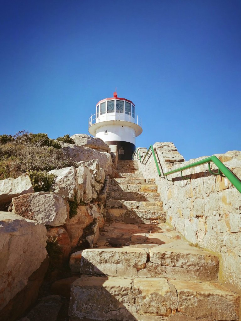 Sur la superbe route panoramique et zigzagante qui mène à Cape Point, j’ai eu la frousse dans les tournants étroits qui semblent plonger droit dans l’océan. D’un côté de l’étroite route, c’est la falaise et l’océan en contrebas et de l’autre côté, c’est la montagne. Les conducteurs n’ont pas le droit à l’erreur; c’est la route de l’impossible! Nous avons croisé une dizaine de babouins se baladant sur la chaussée. Nous étions tout excités de les voir ainsi devant nous. Quel spectacle!