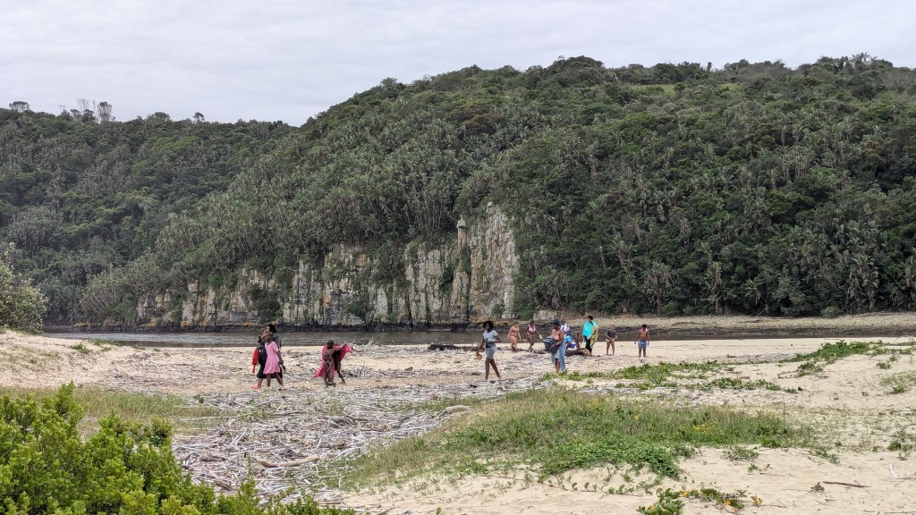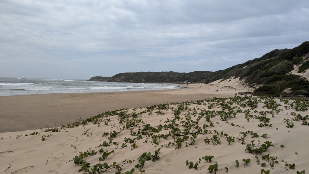 Six kilomètres plus loin, se trouve la Grotto Beach. C’est avec émerveillement que nous avons découvert cette magnifique et immense plage de sable blanc au pied des montagnes du Drakensberg. Quel décor enchanteur ! Il est possible de s’y baigner mais il est conseillé de rester dans les zones désignées pour la baignade, car les courants peuvent être puissants.