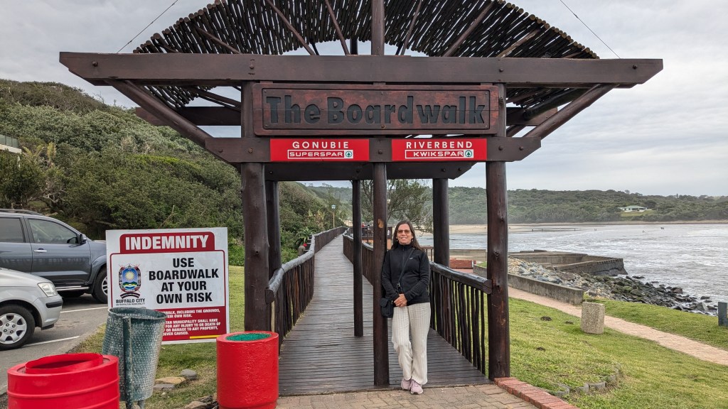 Afin de profiter une dernière fois de la belle Gonubie Beach, nous sommes allés marcher sur sa longue promenade en bois. Quelques baigneurs pataugeaient dans l’océan et d’autres dans la rivière. Nous nous sommes arrêtés quelques minutes pour regarder le spectacle de hip-hop donné par 4 danseurs sur la scène qui a l’océan comme toile de fond.