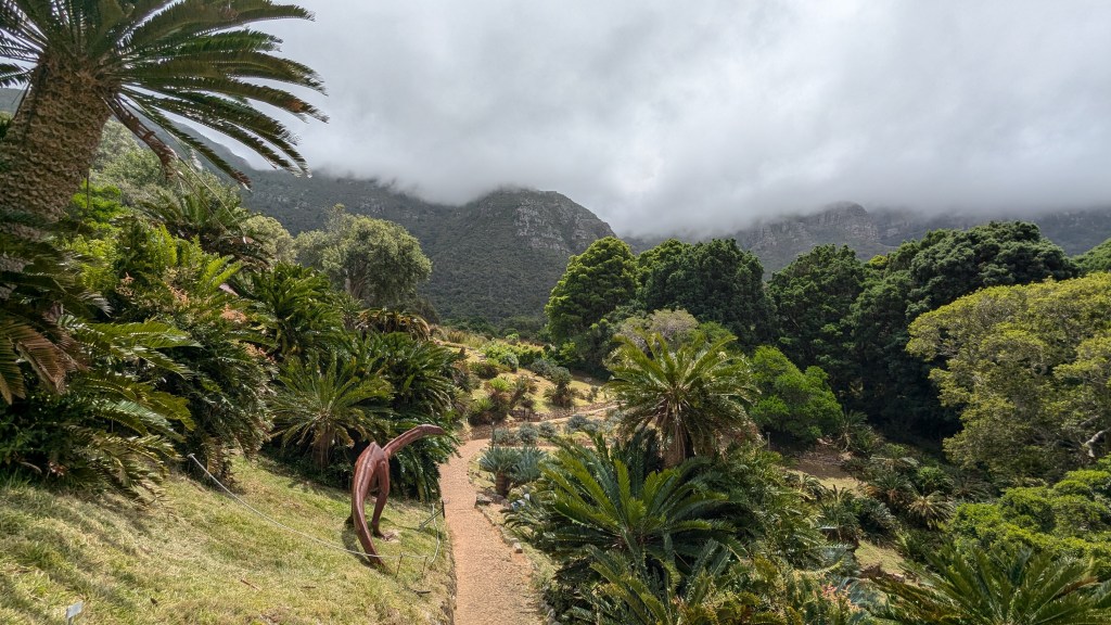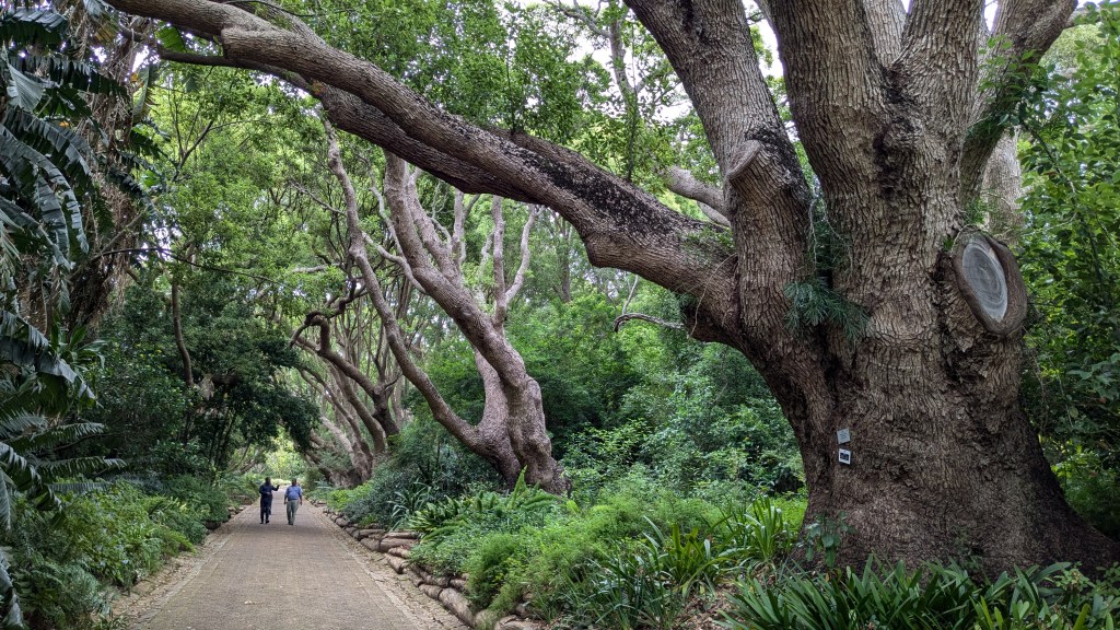Nous nous sommes ensuite rendus au Jardin botanique de Kirstenbosch avec le bus touristique rouge. Kirstenbosch est situé au pied de la célèbre chaîne montagneuse de la Table Mountain. Il est considéré comme l’un des plus beaux jardins botaniques au monde. Fondé en 1913, il est reconnu pour sa mission de conservation des espèces végétales indigènes de l’Afrique du Sud.