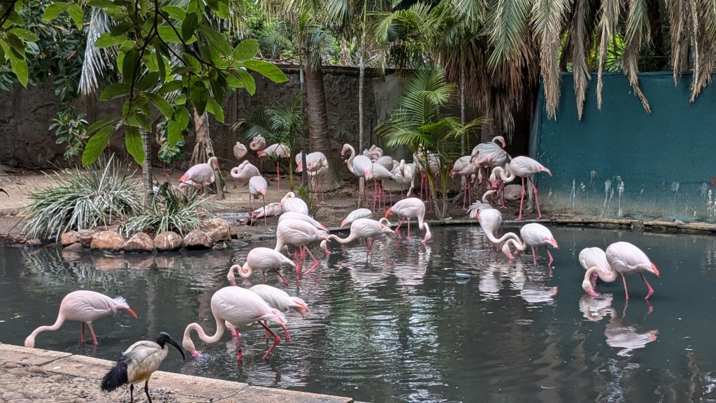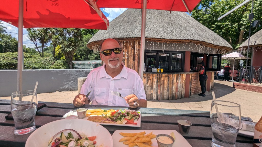 Vers 9h, sous un soleil de plomb et une chaleur déjà écrasante, nous sommes partis avec un Uber Taxi au Zoo de Johannesbourg (Entrée : 7,50$CAD chacun). L’immense zoo est vraiment bien aménagé. C’est tellement agréable de marcher à travers la nature luxuriante du site! Nous avons pu voir une grande variété d’animaux, oiseaux et reptiles en plus de quatre des Big 5 : lions, buffles, rhinocéros et éléphants. Il ne manquait que le léopard.