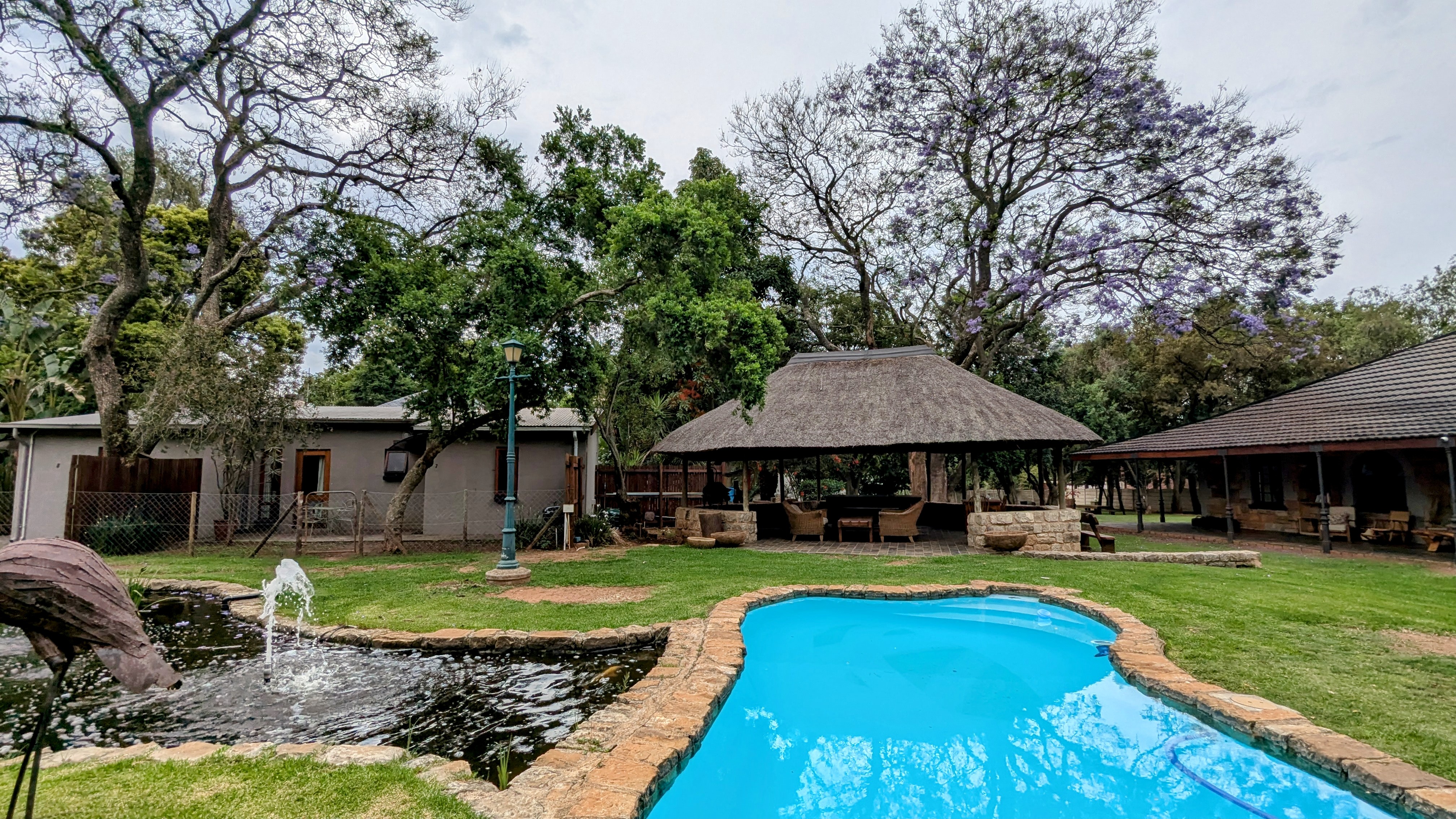 De retour dans la capitale économique, sous une belle température de 24 degrés C, nous avons pris un Uber Taxi jusqu’au Waverly Guest House situé dans le quartier Rosebank. La propriété est immense : 2 piscines, un pavillon pour pique-niquer, un étang avec de gros poissons et des grenouilles, grande maison d’hôte avec pièces spacieuses et ameublement en bois massif et cinq pavillons avec chambres à louer. Notre chambre est dans la maison principale. Nous avons accès au salon, à la salle à manger et à la cuisine. Le patio de notre chambre donne sur la cour boisée. Le chant des oiseaux agrémente joyeusement l’ambiance zen de la belle nature tropicale.