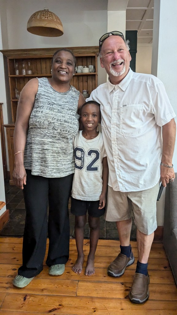 Nous avons repris un Uber Taxi pour nous conduire au Museum of Illusions au centre d’achats et de divertissements The Zone. Pendant que je visitais ce musée amusant, surprenant et divertissant, Claude est allé prendre une bière au resto-bar Mamasamba sur la rue animée de The Zone. Après ma visite du musée, je me suis jointe à lui au resto-bar. Nous y avons pris une consommation tout en observant le va-et-vient des passants. Nous avons ensuite fait le tour ensemble du Arts & Crafts Market. Les prix élevés nous ont dissuadés d’acheter des souvenirs. Nous avons acheté quelques provisions chez Spar et sommes revenus en Uber Taxi à notre maison d’hôte. Claude s’est baigné et a profité de la cour pendant que j’étais allongée dans notre lit, affligée par une bonne migraine. Claude a soupé seul et j’ai pris un bol de soupe vers 20h, quand ma migraine a commencé à s’en aller. (C’est probablement la chaleur et le soleil qui ont déclenché ma migraine.)