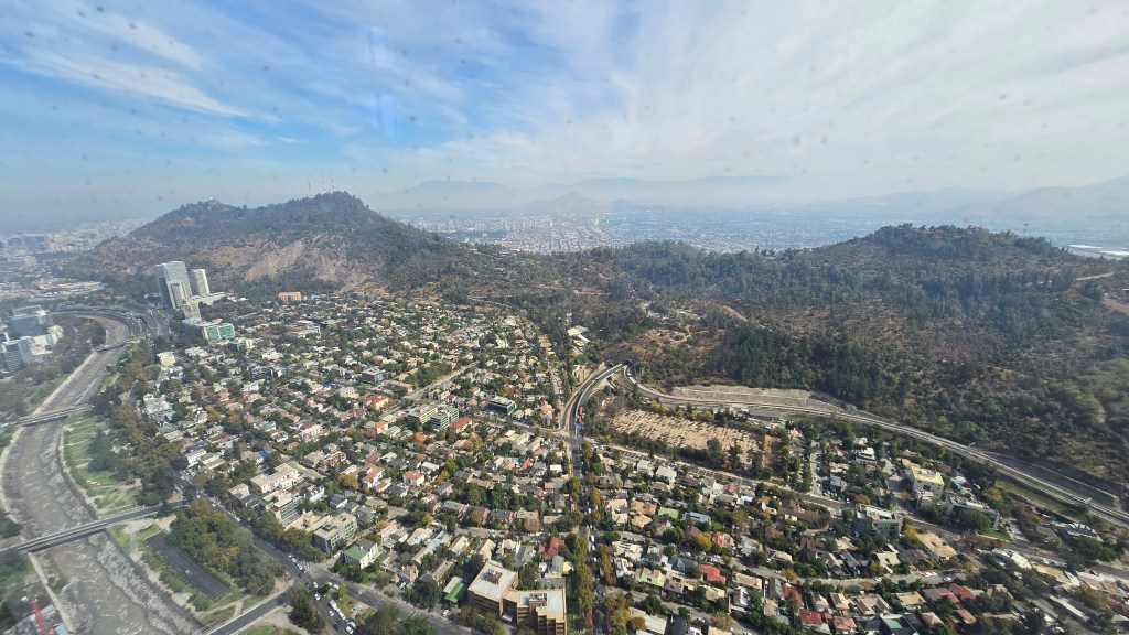 Le Costanea Center est la plus haute tour d’Amérique du Sud avec ses 62 étages et ses 300 mètres d’altitude. Nous avons pris l’ascenseur rapide jusqu’à son sommet. L’accès au SkyCostanera est dispendieux (18 000CLP ou 27$CAD par personne), mais la vue panoramique à 360 degrés sur la ville et les sommets enneigés de la Cordillère des Andes est formidable! Dommage que la pollution de l’air crée un voile jaunâtre au-dessus de la ville.