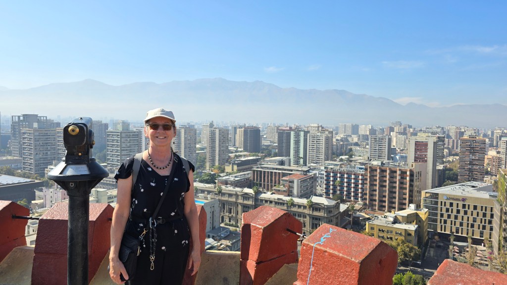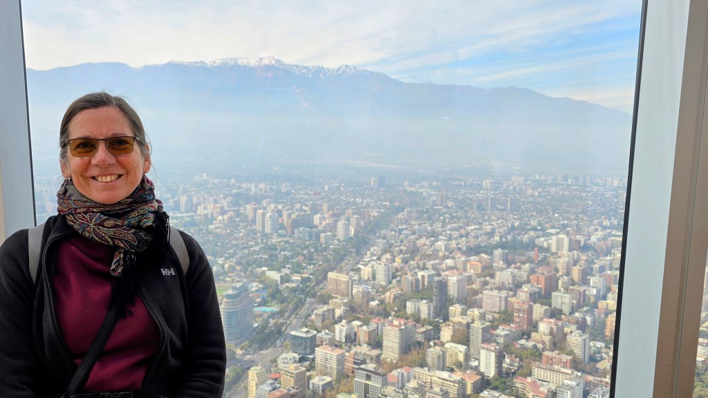 Nous sommes descendus de l’avion sous une température fraîche (16 degrés C). Après avoir passé les douanes et récupéré nos bagages, nous nous sommes procurés des pesos chiliens dans une Casa de Cambio avec ma carte Visa TD. (Je rembourserai mon avance de fonds dès le lendemain afin d’éviter les intérêts élevés pour ce genre de transaction.)