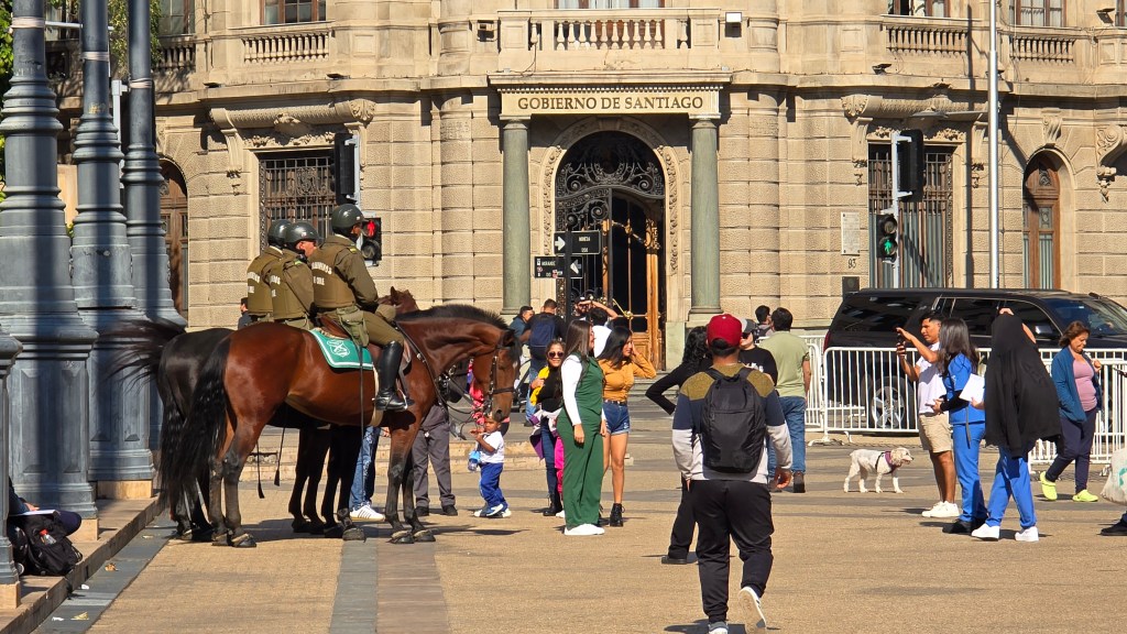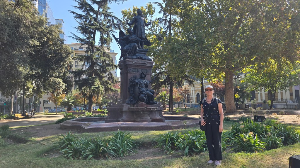 Nous nous sommes levés sous un beau ciel bleu et une fraîche température matinale. Après notre petit-déjeuner, nous avons marché jusqu’au Cerro Santa Lucia en passant derrière le Palacio de la Moneda que nous connaissions déjà.