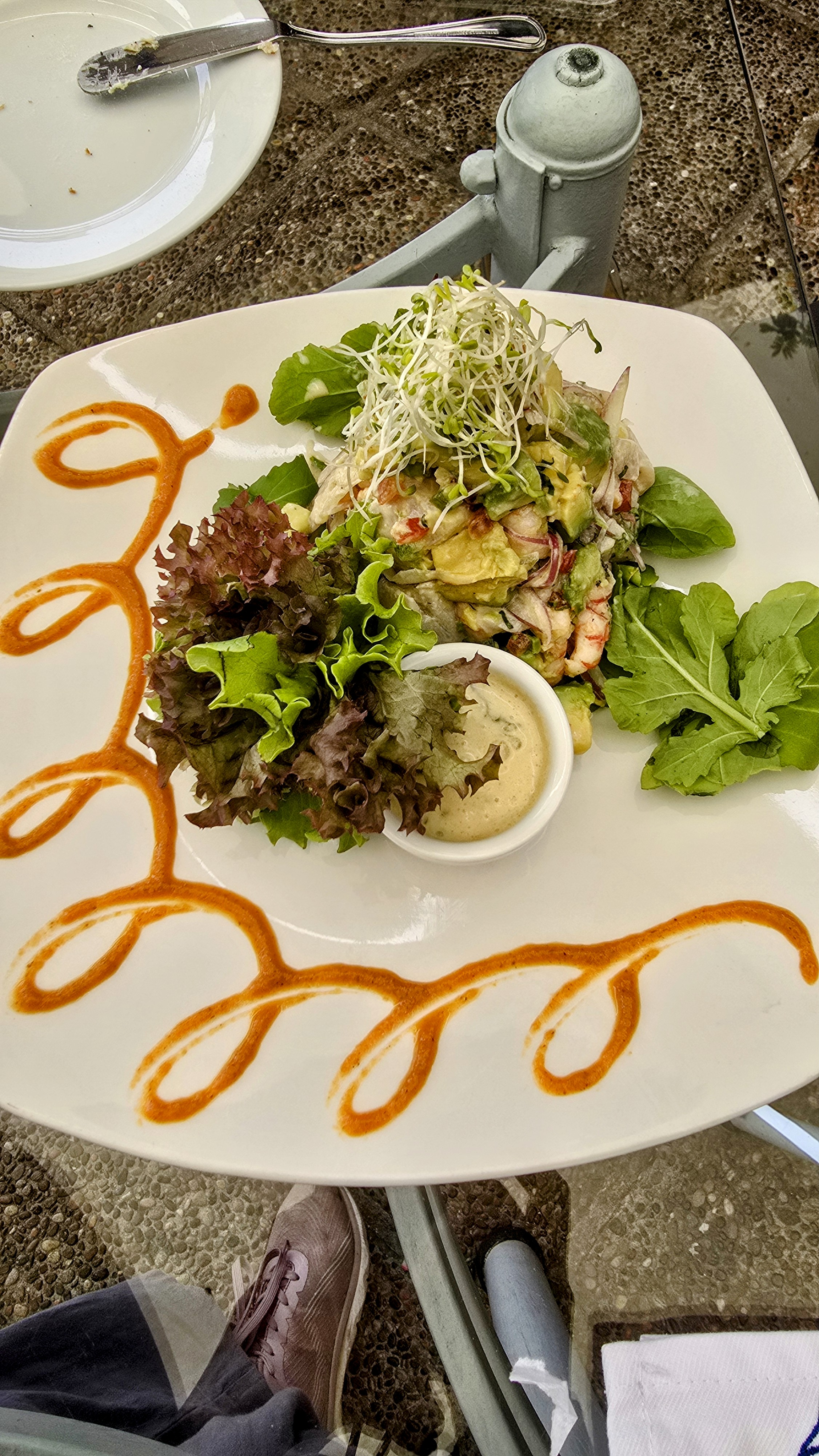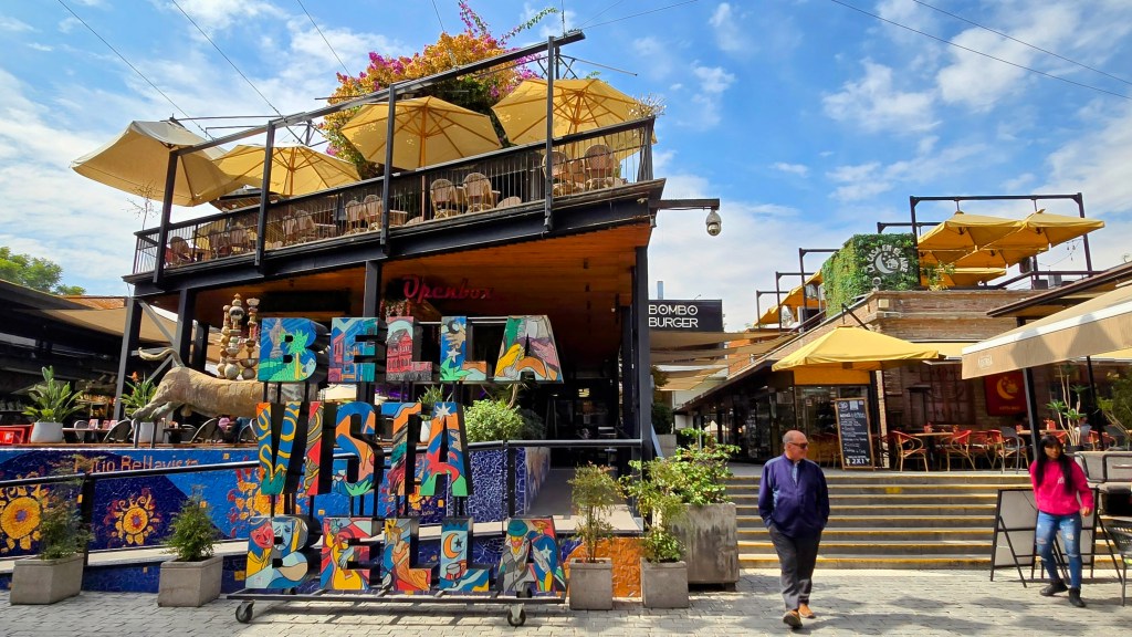 Nous avons poursuivi notre marche jusqu’au Patio Bellavista, situé un peu plus loin sur la même rue. Cette place moderne et attrayante regroupe des restaurants et des bars autour d’une cour intérieure. On peut facilement deviner qu’en soirée, l’endroit doit être vraiment animé et dynamique.