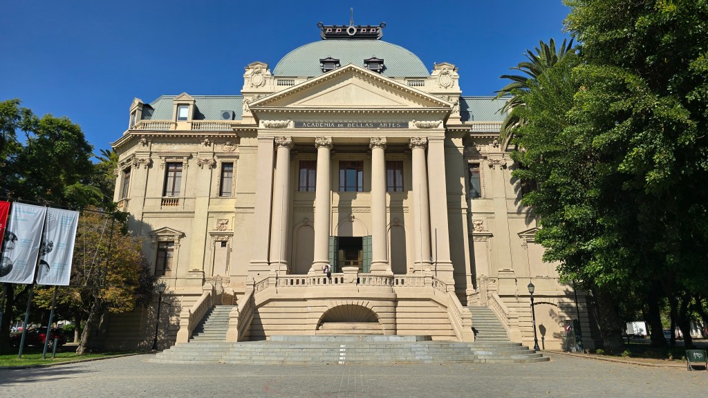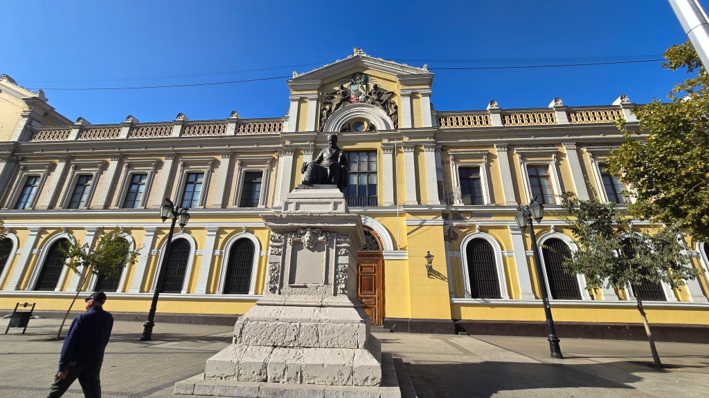 Nous sommes passés devant l’élégant Palacio Bruna, un édifice qui attire l’attention par son architecture néo-Renaissance et son histoire liée aux grandes familles chiliennes du début du XXᵉ siècle. Construit entre 1916 et 1921 pour Augusto Bruna, un riche homme d’affaires, le palais reflète le faste de l’époque et l’influence européenne sur l’élite locale.