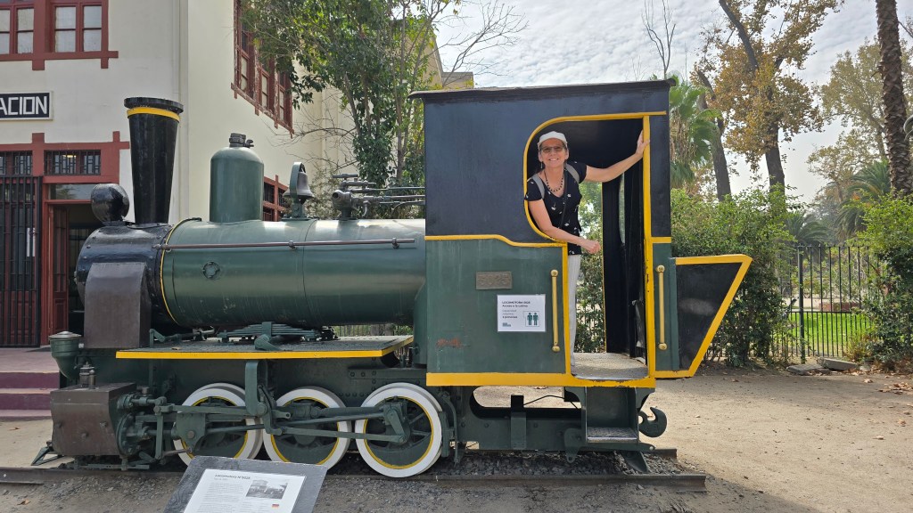 Nous nous sommes rendus à l’extrémité du Parque Quinta Normal pour visiter le Musée ferroviaire ($1500CLP ou $2.25CAD/ personne de plus de 60 ans). On y trouve une collection impressionnante de locomotives à vapeur restaurées dont certaines datent du 19e siècle (wagons historiques et voitures présidentielles, explications sur l’histoire ferroviaire du Chili et visite de l’intérieur de certaines locomotives).