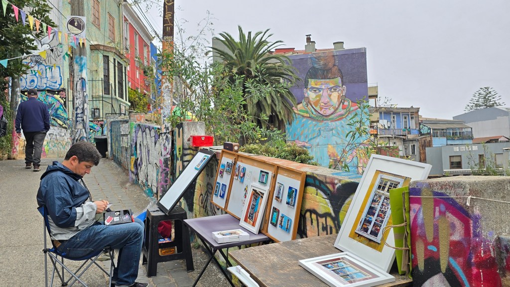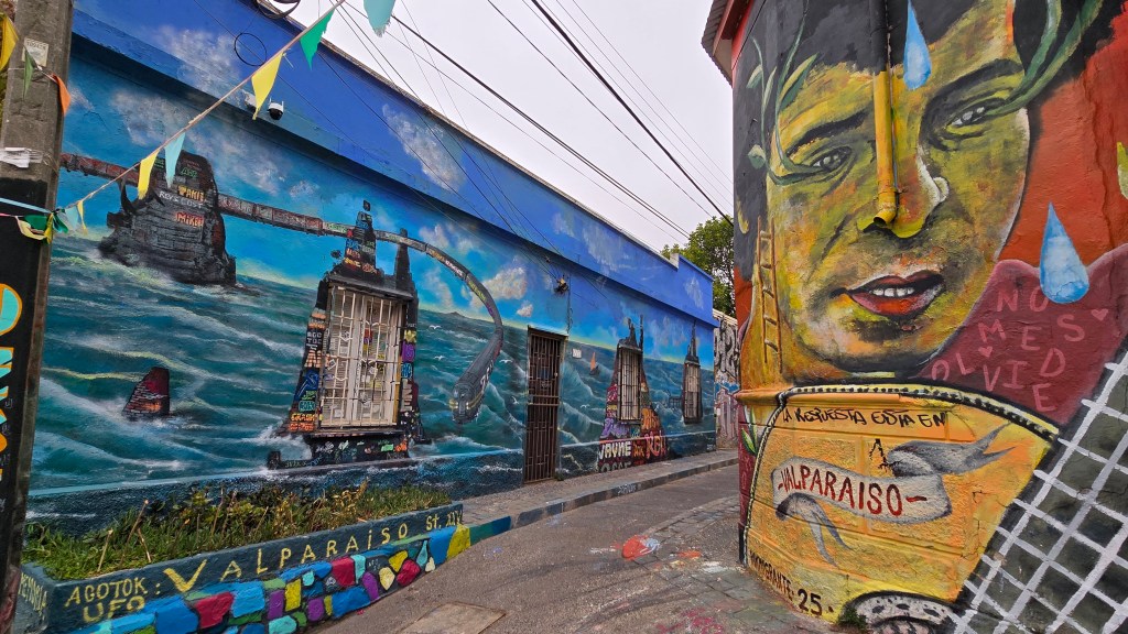 Valparaíso est aussi un haut lieu de l’expression artistique. Véritable capitale du street art chilien, ses murs sont tapissés de fresques colorées, souvent engagées ou poétiques, en particulier dans les quartiers emblématiques de Cerro Alegre et Cerro Concepción. L’art est partout, et la ville vibre au rythme des galeries indépendantes, des cafés culturels et des performances de rue.