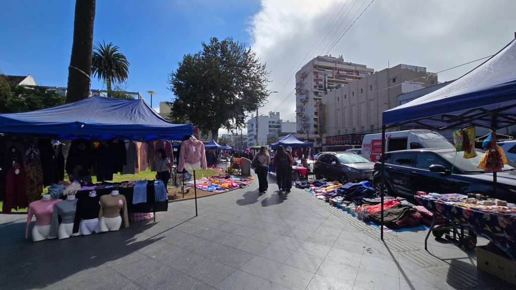 Nous avons ensuite fait l’achat d’une camisole et d’un caleçon longs pour Claude à la boutique Blanca Nieve de la Calle Victoria, parallèle à la rue Condell. Nous avons marché jusqu’au Parque Italia, aussi appelée Plaza Salvador Allende. Nous y avons fait une pause, le temps de savourer une coupe de fruits frais achetés sur la rue.