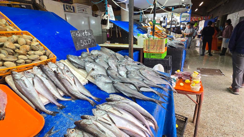 Le marché d’Angelmó, situé à environ 2 km du centre de Puerto Montt, est un lieu emblématique réputé pour son ambiance animée et ses étals colorés. On y trouve une grande variété de produits de la mer fraîchement pêchés, des fruits de mer aux poissons, reflétant la richesse maritime de la région. Les visiteurs peuvent également y déguster des plats typiques dans les petites « cocinerías » locales, offrant une expérience culinaire authentique. En plus des produits alimentaires, le marché propose un large éventail d’artisanat local, notamment des objets en bois d’alerce et des créations mapuches en crin de cheval. C’est un endroit incontournable pour s’immerger dans la culture locale et apprécier les saveurs uniques du sud du Chili. (Référence: ChatGPT)