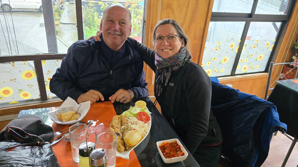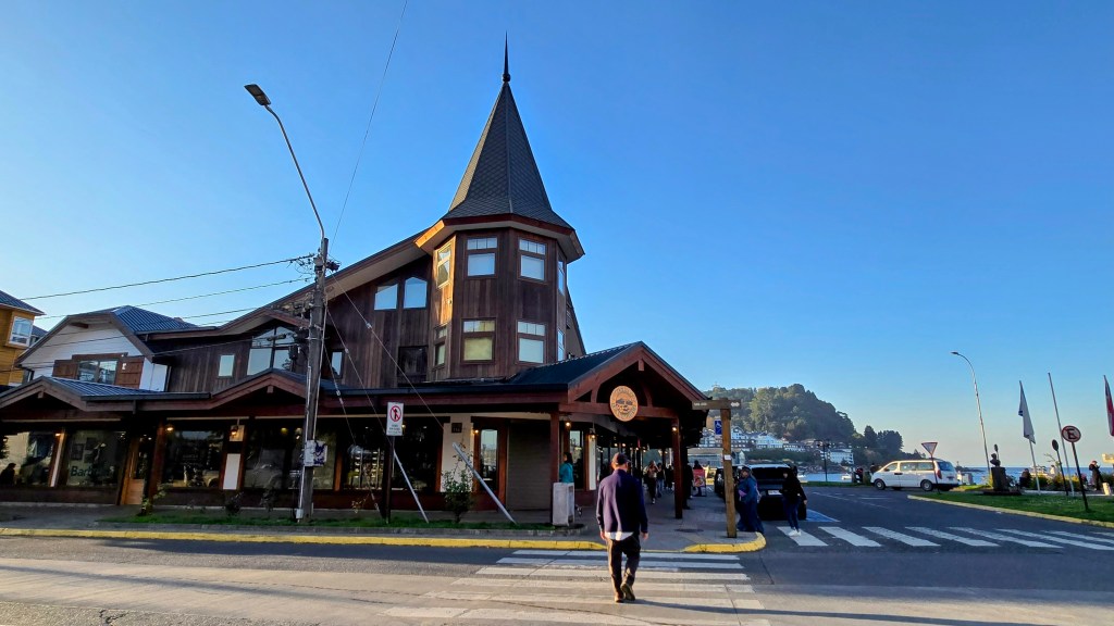 Profitant d’une timide percée de soleil, nous sommes sortis en milieu d’après-midi pour aller nous promener sur Antonio Varas, principale rue commerciale de Puerto Montt. Nous avons fait une pause-café dans un petit restaurant local, le temps que la pluie qui avait repris, fasse de nouveau place au soleil.