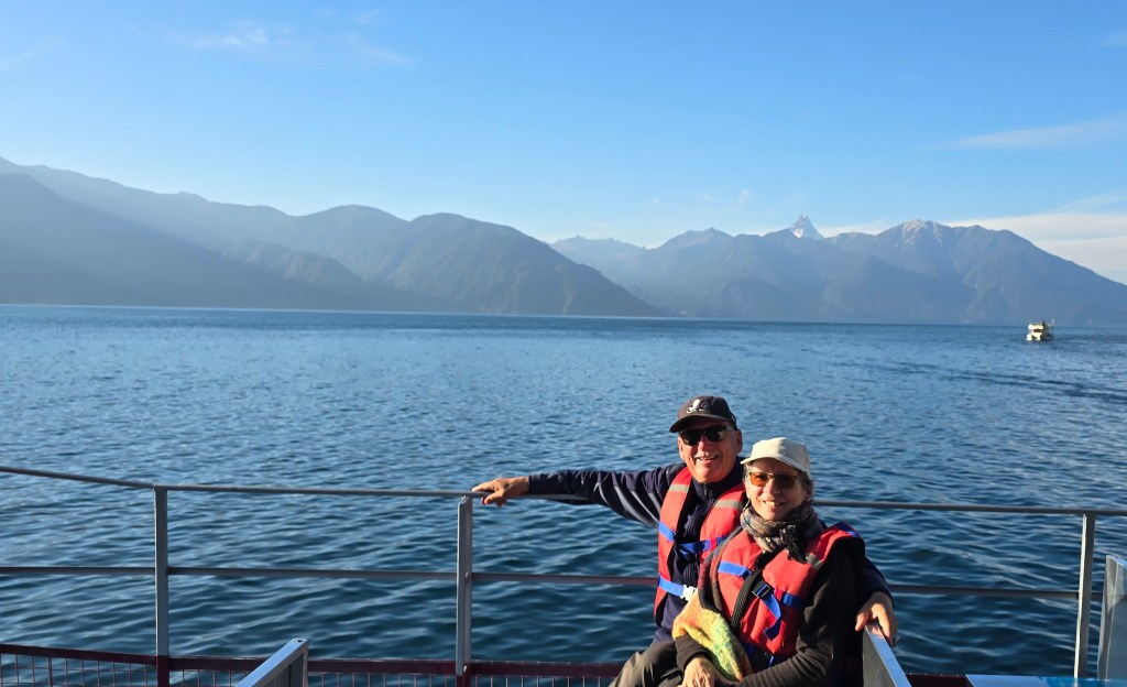 Nous nous sommes ensuite rendus au Lago Todos Los Santos pour y faire une croisière de 35 minutes sur le bateau à deux étages nommé ZEUS (6 000$CLP ou 8.60$CAD par personne). Cette balade en bateau nous a enchantés. Le grand lac est d’une beauté inégalée avec toutes les hautes montagnes et les trois volcans qui l’entourent. Quelle croisière zen et apaisante!