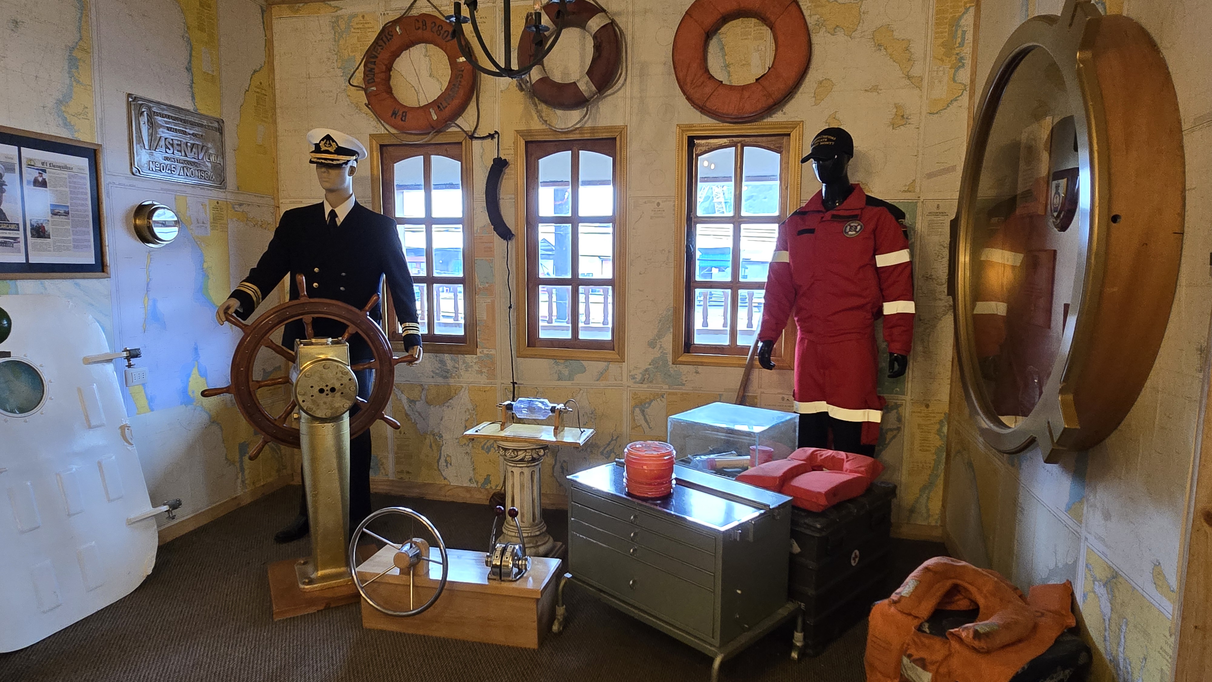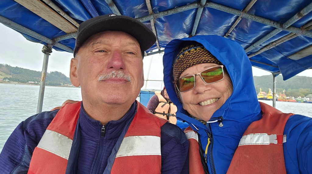 Nous avons mangé une bonne omelette au fromage pour déjeuner. Quel luxe! Après une séance d’écriture pour moi, nous sommes partis prendre un bus public (1200$CLP) par personne) sous un ciel nuageux et une température fraîche. En moins de 30 minutes, nous étions rendus à Puerto Montt. Le chauffeur nous a laissés à quelques coins de rue du Marché d’Angelmó. En nous y rendant à pied, nous sommes tombés sur un petit musée maritime. Nous en avons fait la visite avec intérêt.