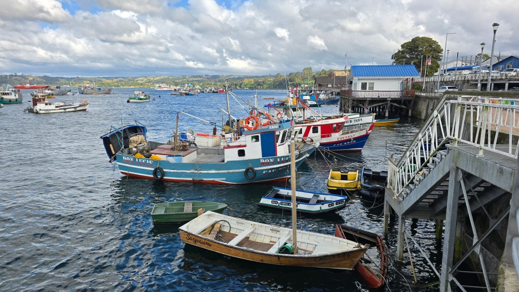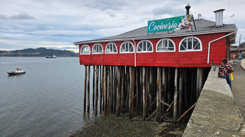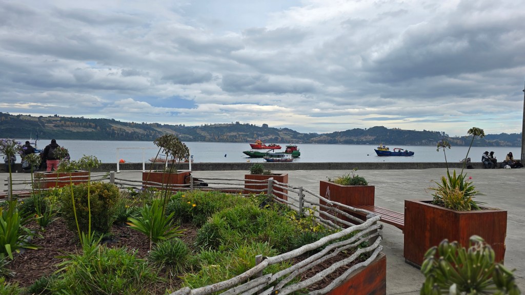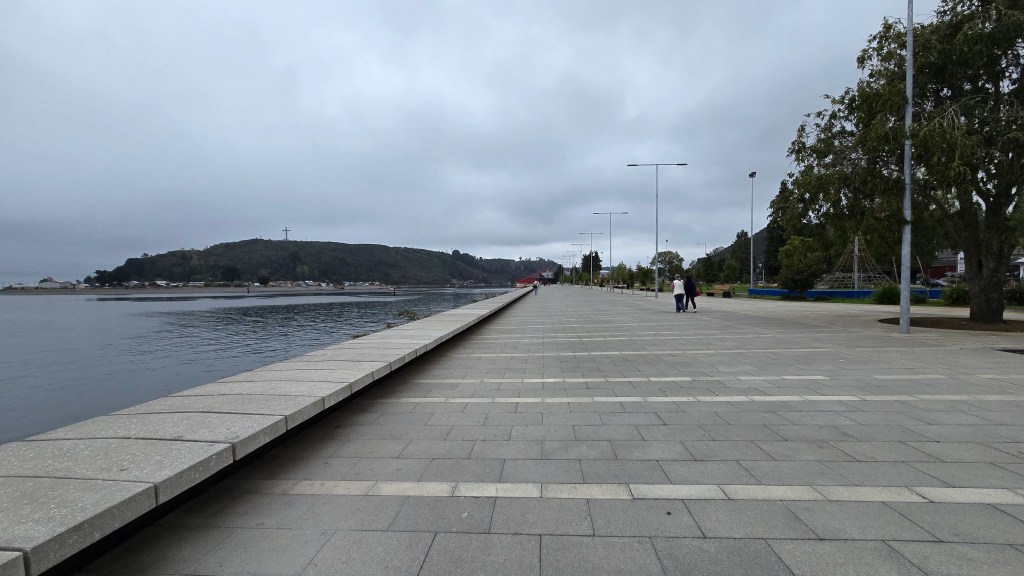 La Costanera de Dalcahue est une promenade en bord de mer offrant des vues panoramiques sur le canal de Dalcahue et les îles voisines. C’est un lieu idéal pour une balade relaxante, permettant d’observer les activités des pêcheurs locaux et de profiter de la brise marine. Quelle belle balade nous avons faite sous un beau ciel bleu!
