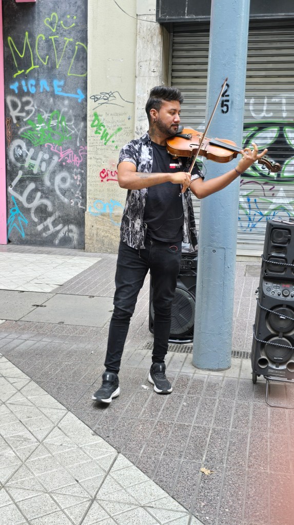 Nous avons continué notre ballade et sommes allés prendre un café au Marley Coffee au troisième étage du luxueux Mall Vivo Centro. Sur la Calle Bandera, nous nous sommes arrêtés pour écouter un violoniste jouer habilement la pièce Libertango de Piazolla et regarder défiler les passants. Vaincus par nos 15 000 pas marchés depuis le matin, nous avons pris un taxi pour rentrer nous reposer au petit salon de l’hôtel en attendant l’heure du départ.