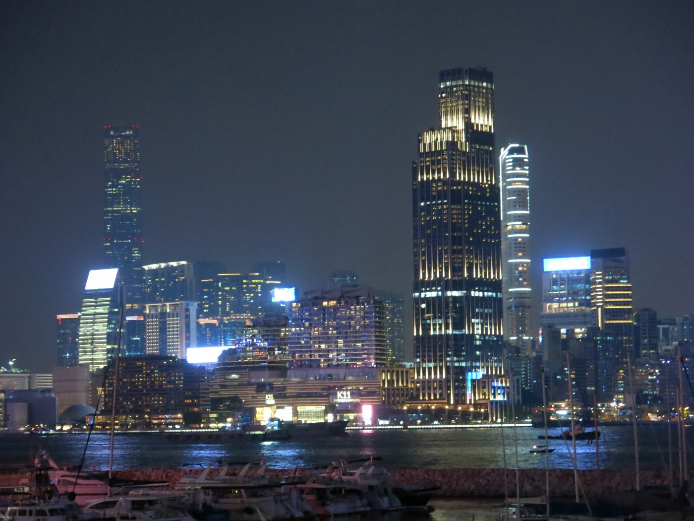 After our excellent meal, we walked to Victoria Park and climbed onto the viaduct to get a view of the city under its night lighting. We could see the business district named « Central » with its high skyscrapers, the Victoria Harbour, the West Kowloon district on the other side of the shore with, among others, the high tower of the Bank of China. We then went around the streets around their apartment. We had plenty to see: tall buildings and giant illuminated posters, crowded streets, posters of demonstrations glued all over the ground, a few hooded protesters, shops of all kinds, Apple store on three floors, etc. Iqbal also showed us his place of work: the Indonesian Consulate, located two blocks from his home.
