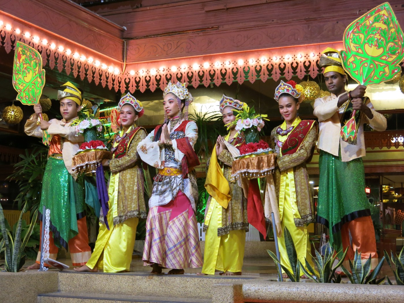 Enjoying a warm evening (29 degrees C), we toured the many kiosks of the night market. Claude found two beautiful pairs of light cotton pants. We also witnessed a show of Malay dances taking place in a chic beach restaurant. We were allowed to attend without paying. I was thrilled!